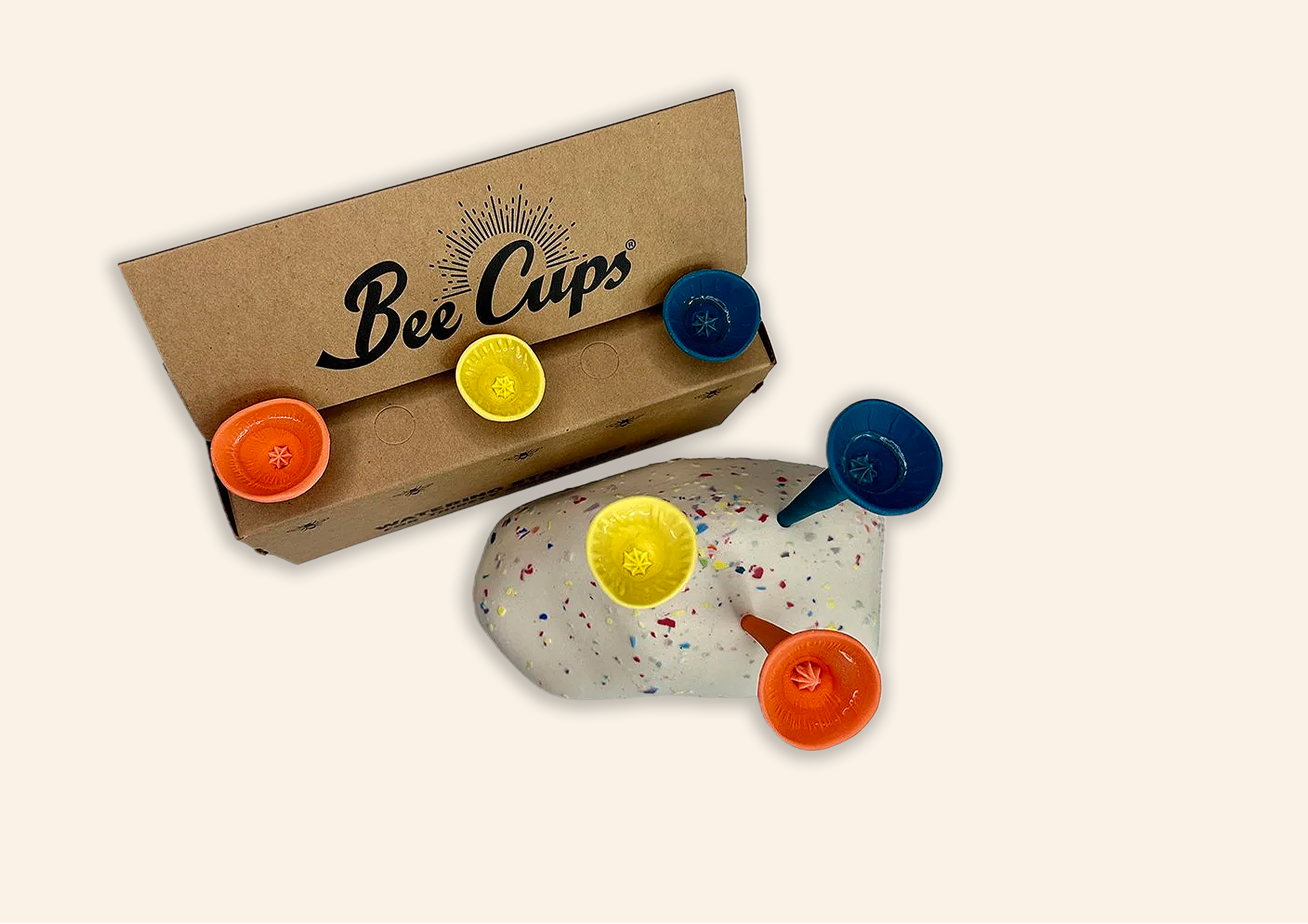 All Bee Cups are hand-painted with our patented pollinator-attracting Bee Vision Glaze