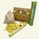 One pound of Mostly Yellow Pollen™:  16 crushed Yellow Bee Cups to cover up to six square inches of dirt in your flower pots.