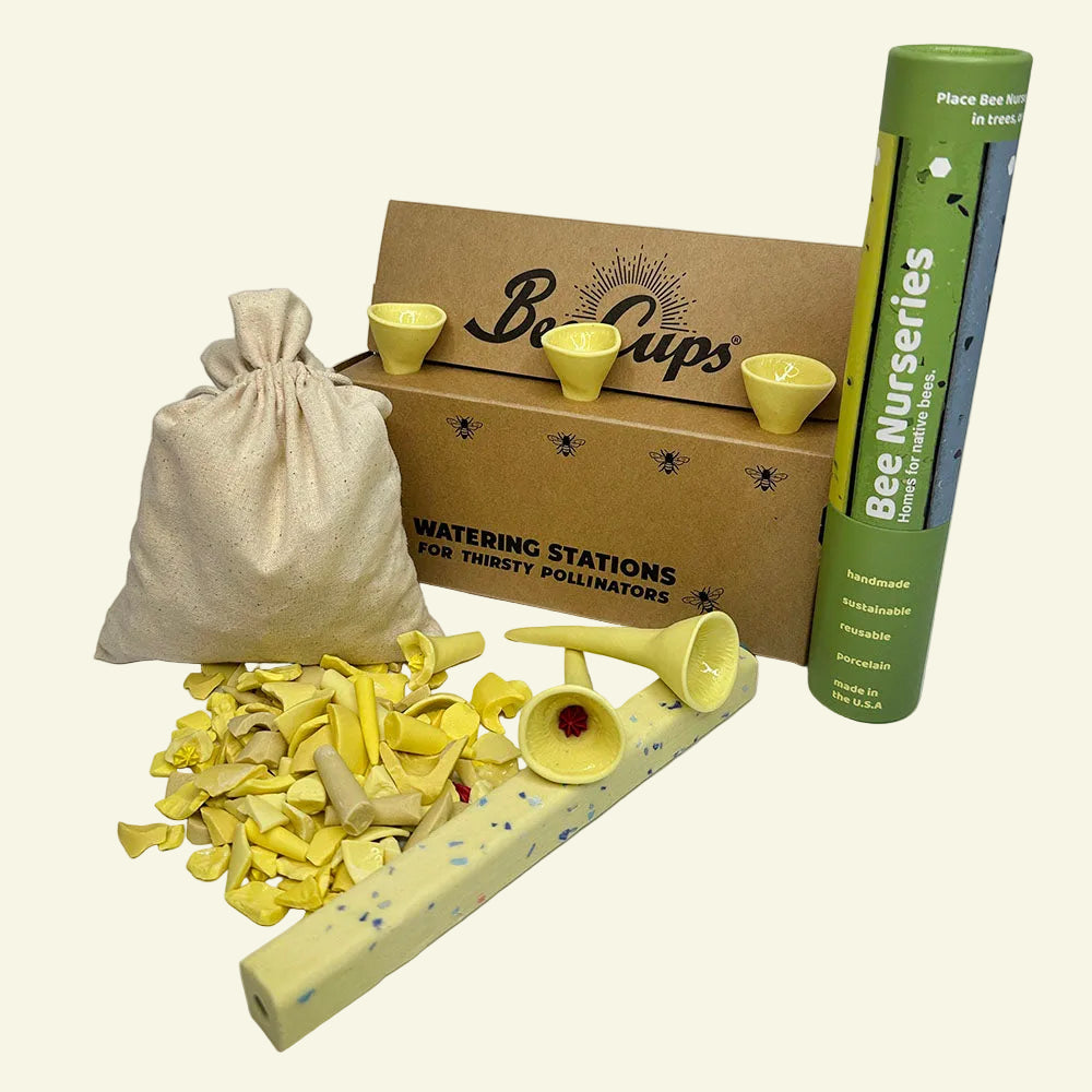 Every Bee Cup is hand-painted with our patented, pollinator-attracting Bee Vision Glaze