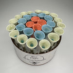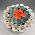 Eucalyptus and Orange Oasis is a collection of 30 pale green, mid green and orange Bee Cups with orange centers.