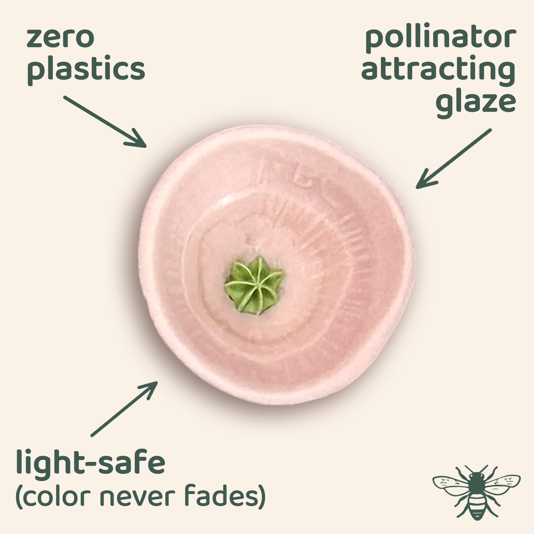 Every Bee Cup is hand-painted with our patented, pollinator-attracting Bee Vision Glaze