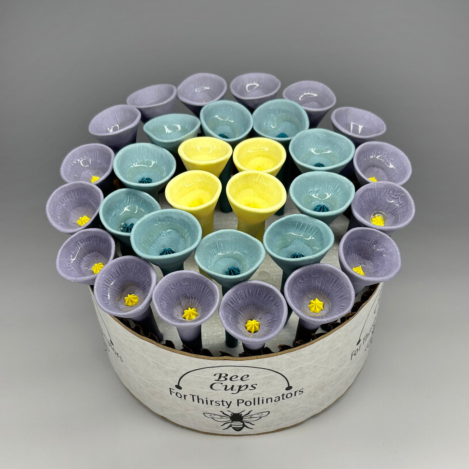 Every Bee Cup is hand-painted with our patented, pollinator-attracting Bee Vision Glaze