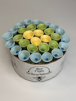 This springtime oasis has 30 Bee Vision Bee Cups in greens, turquoise, and yellow