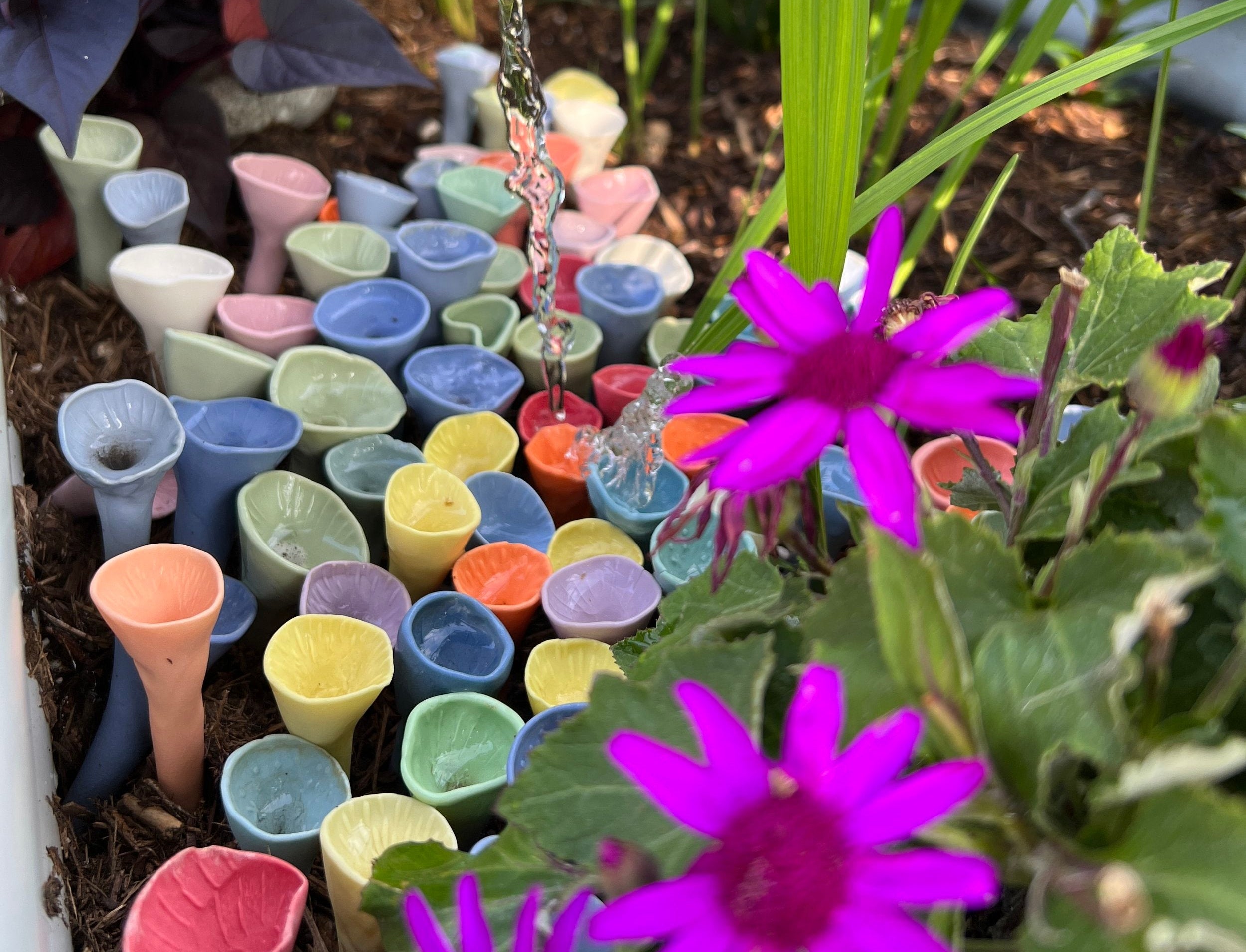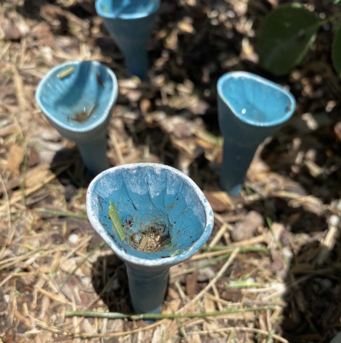 - Place mulch or rocks around your Bee Cups to keep dirt from splashing into the cups.