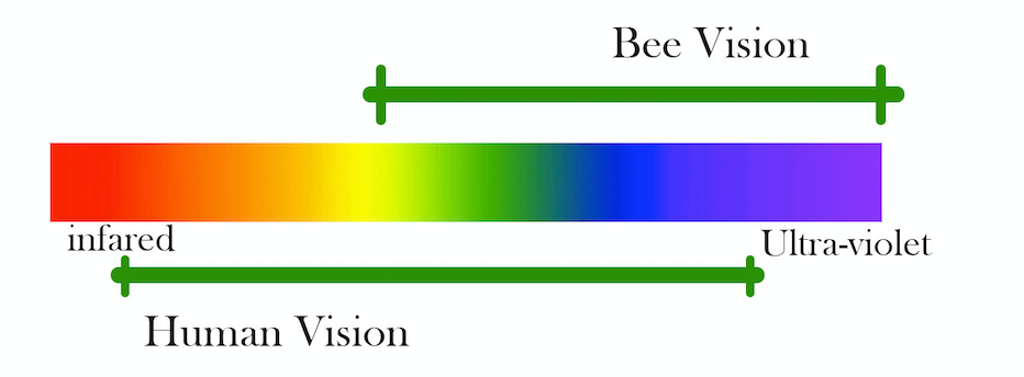 I love this question! Did you know that bees cannot see all the colors that humans see? Bees have the ability to see yellow, green, blue, and ultraviolet, but they cannot see red or orange. Bees are highly attracted by the water, but they also love colors in their vision range.