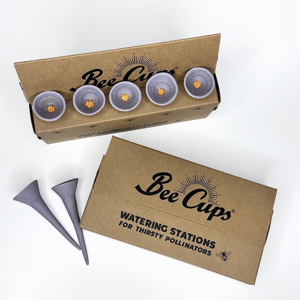 Each Bee Cups® watering station collects a teaspoon of water, giving thirsty bees and butterflies a safe place to drink. Handmade from porcelain and finished with an ultraviolet ceramic glaze, they shine in a spectrum visible to pollinators but invisible to us without a blacklight. Their unique shape encourages natural evaporation, helping prevent mosquitoes while keeping pollinators hydrated.
